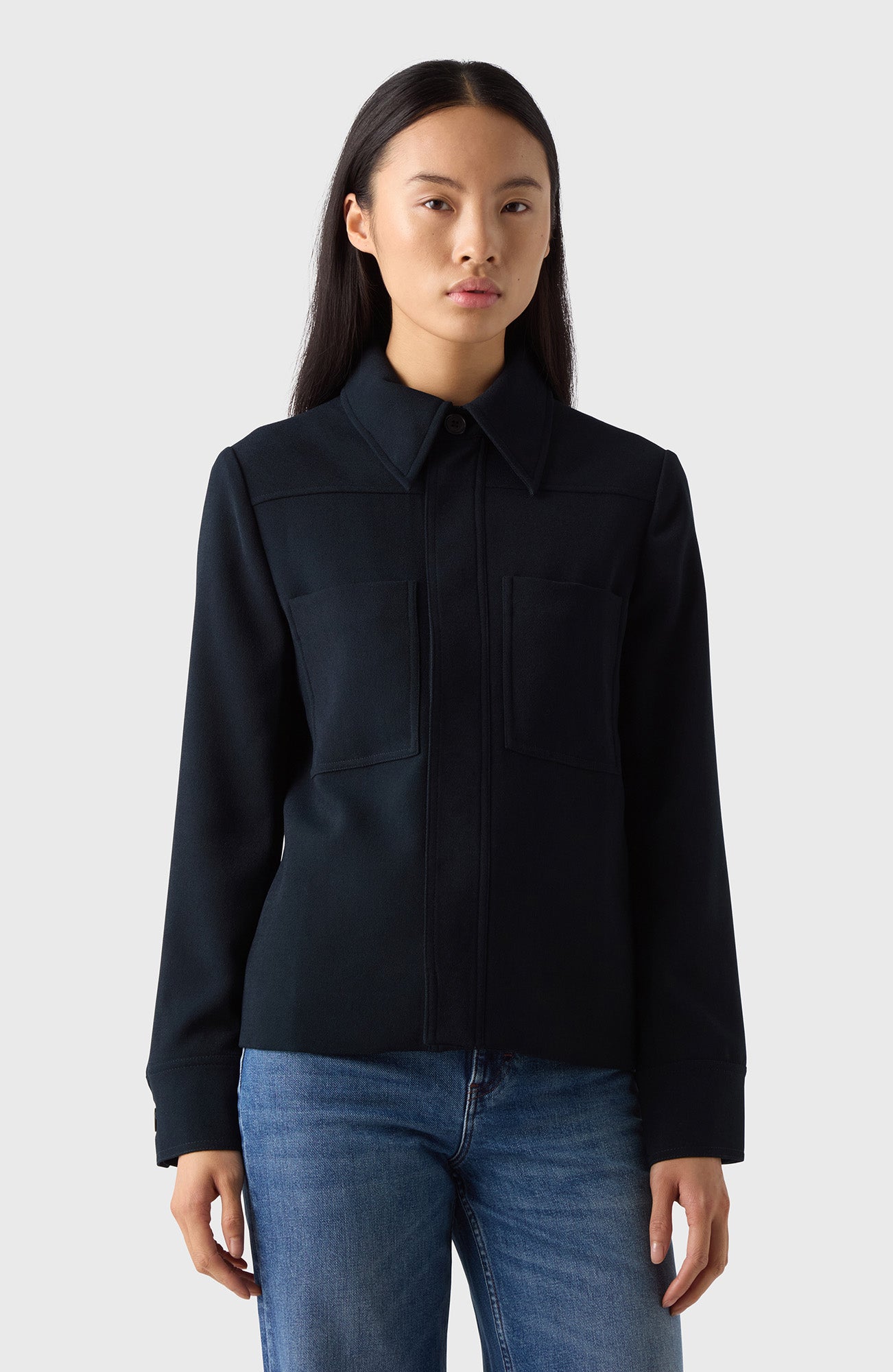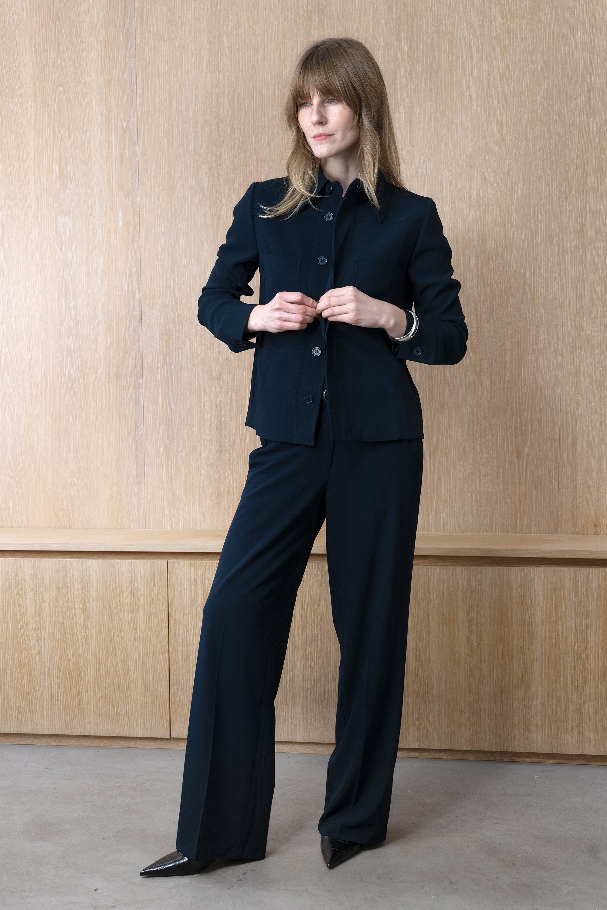 A polished, elegant feel. The straight cut and the big collar makes The Marion Jacket suitable for any occasion. Crease-resistant, perfect for travel or the office.