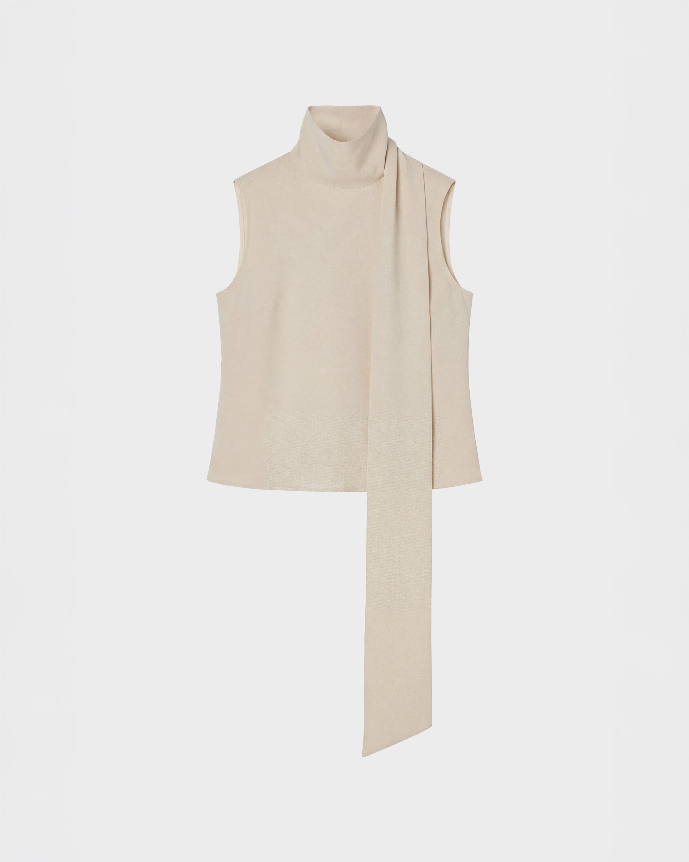 The Orly Turtleneck Top is a sleeveless turtleneck top in twill with a scarf detail. Wear as a set with the matching Marlow Skirt, or worn on its own.