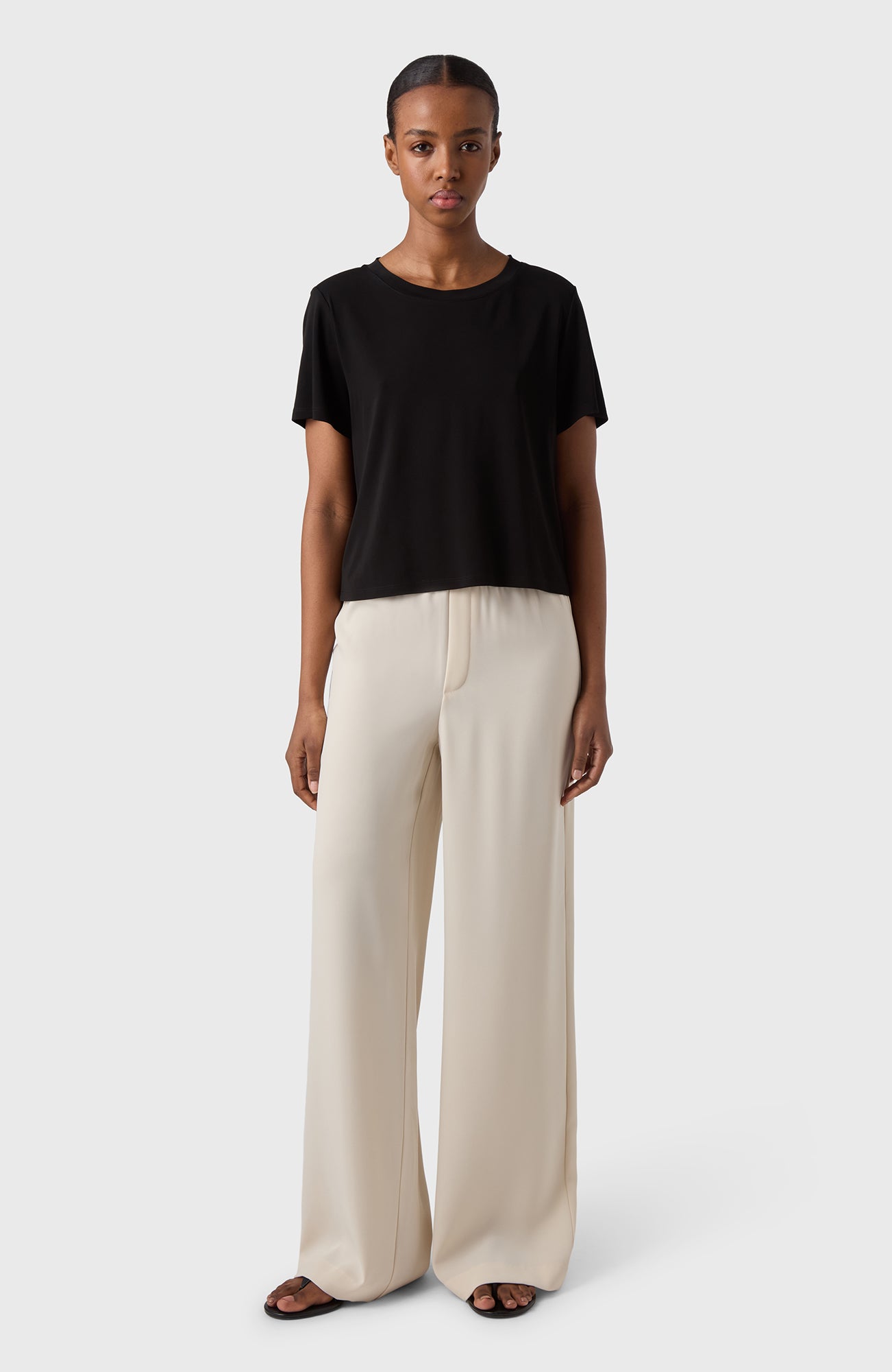 Fließende Hosen mit elastischem Bund – können allein mit einem T-Shirt getragen werden oder mit dem Joelle-Hemd als elegantes, entspanntes Set, oder sogar offen über einem Top mit dem Johanna-Hemdkleid für einen trendigen Look