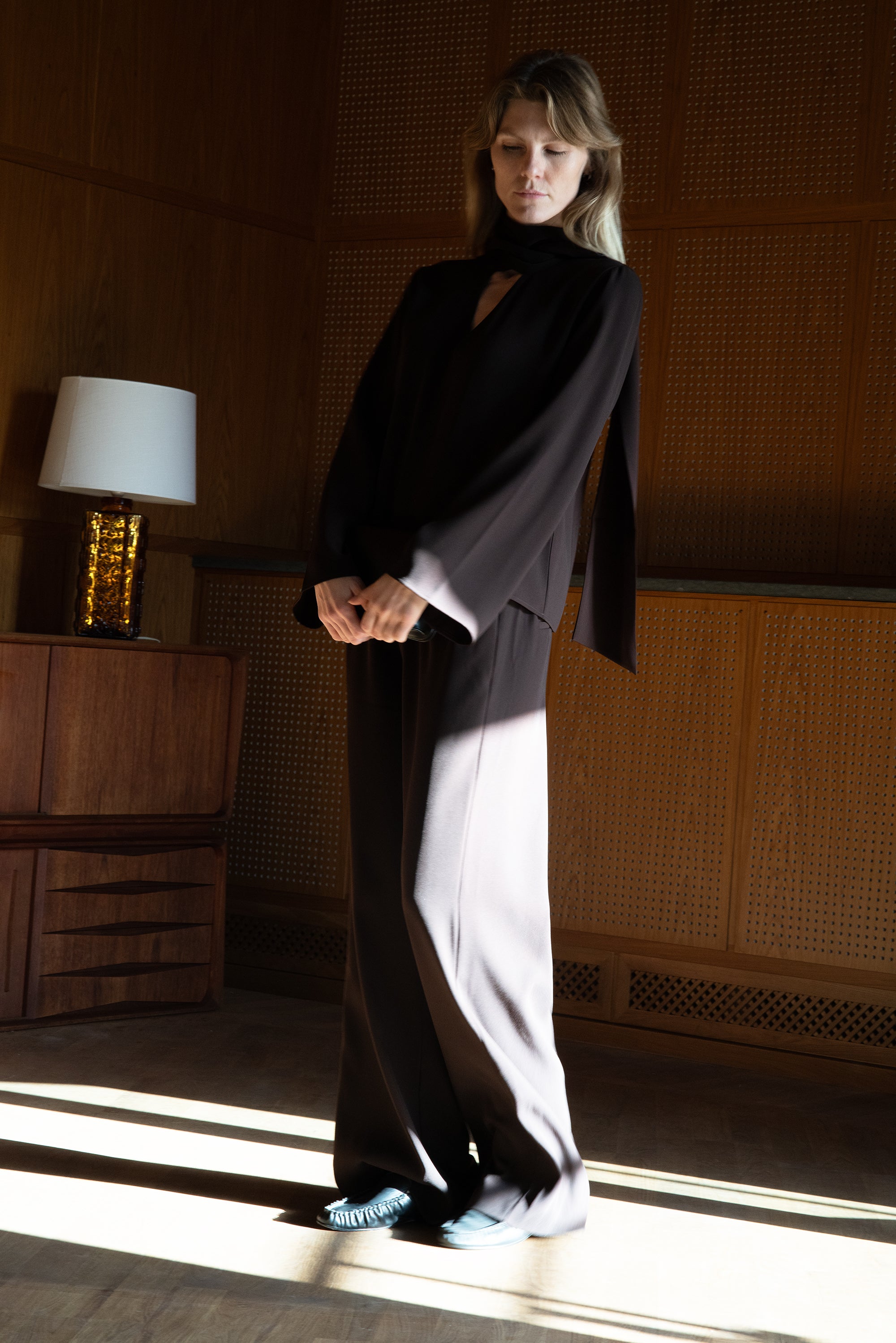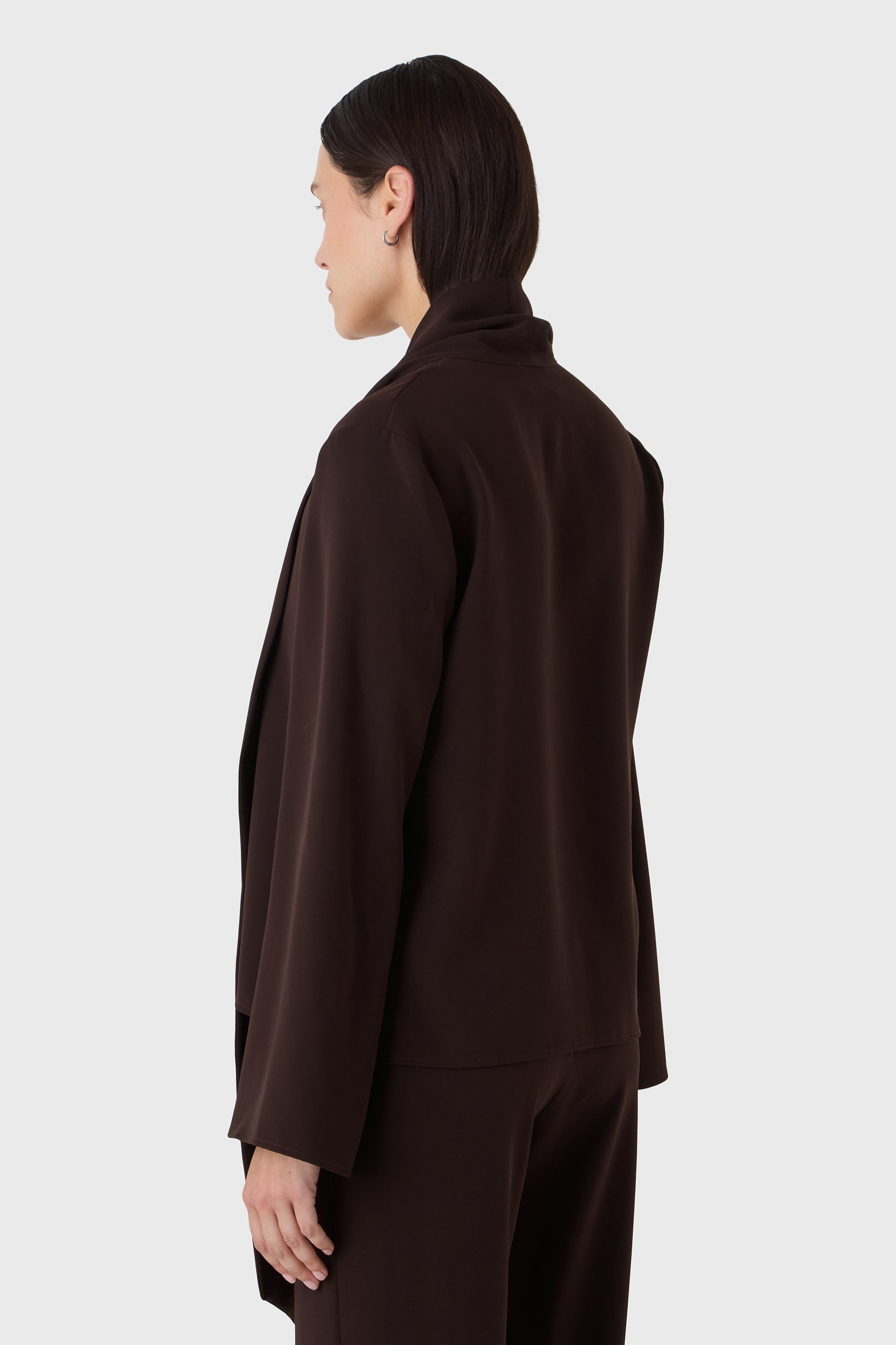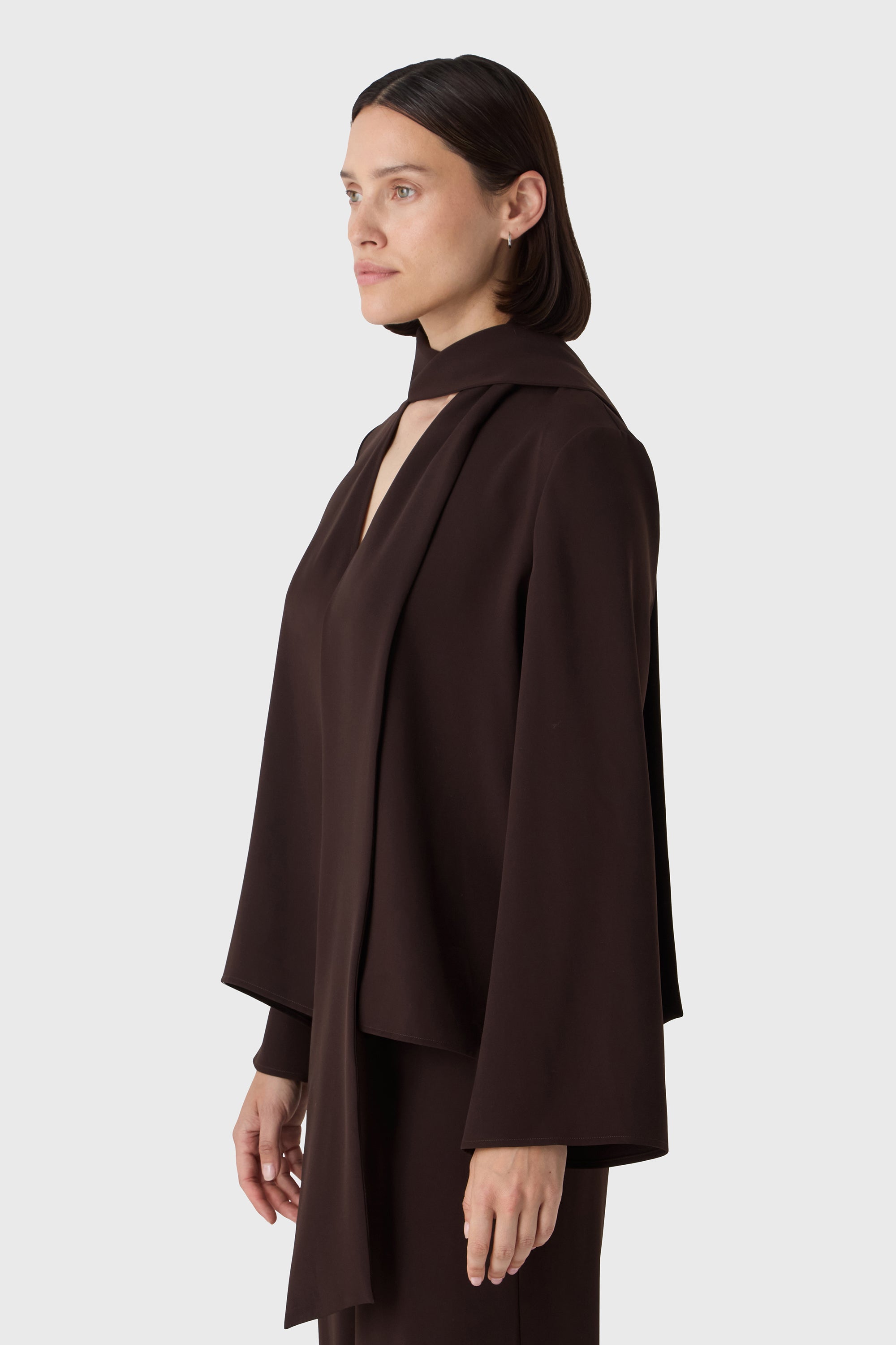 Mühelose Eleganz mit einem Twist. Die Renée Bluse besteht aus weichem Poly-Twill und verfügt über lange Ärmel, einen fließenden Fall und einen großzügigen Schalkragen, der auf verschiedene Weise gestylt werden kann. Binden Sie ihn als Schleife, lassen Sie ihn frei fallen oder wickeln Sie ihn – er passt sich Ihrem Tag an.