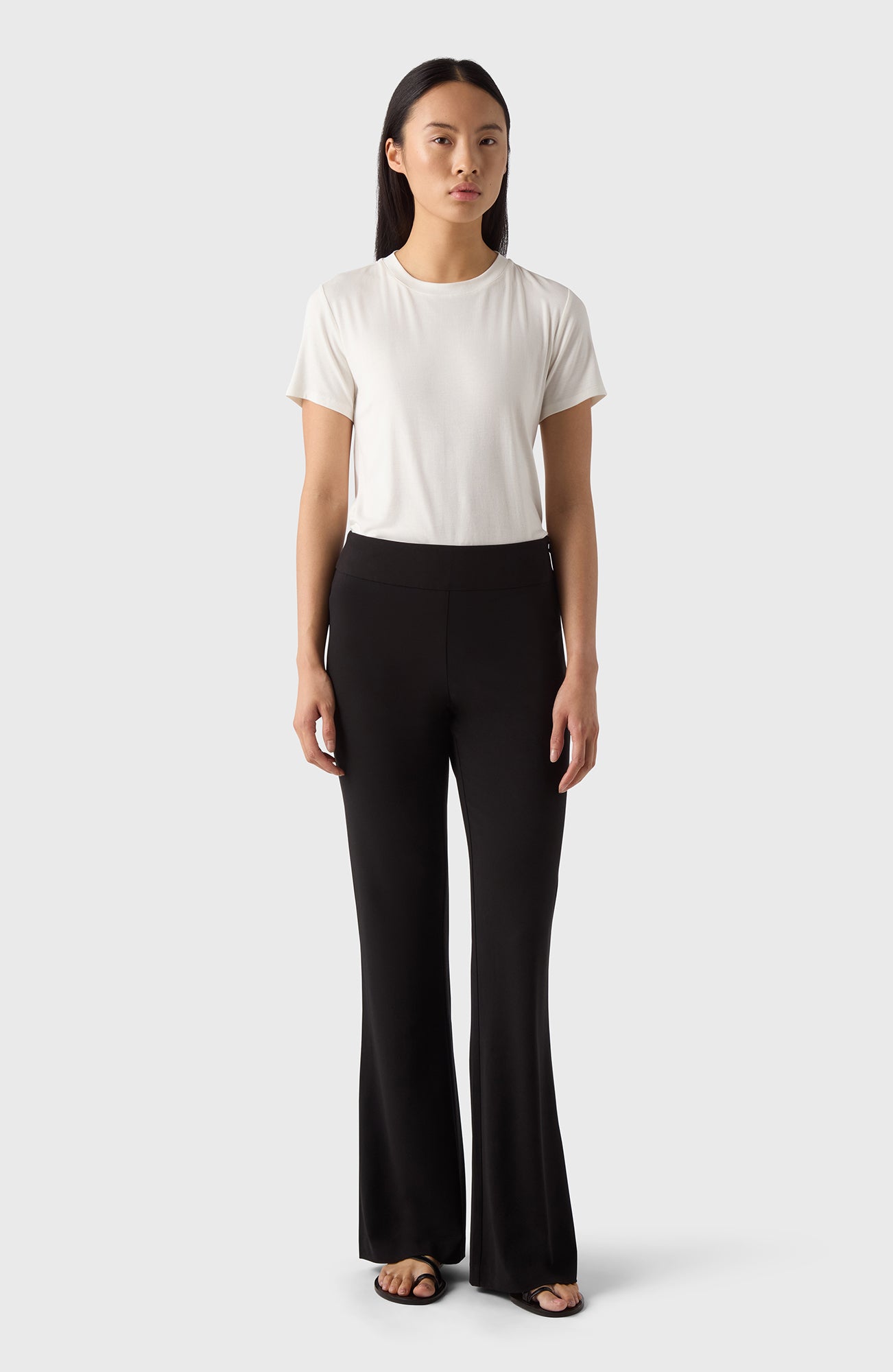 Diese Hose aus unserem leichten Soft Stretch Crêpe ist mit einem hohen Bund, schmaler Passform an den Oberschenkeln, ausgestellten Beinen und einem seitlichen Reißverschluss für eine klare Silhouette gefertigt.