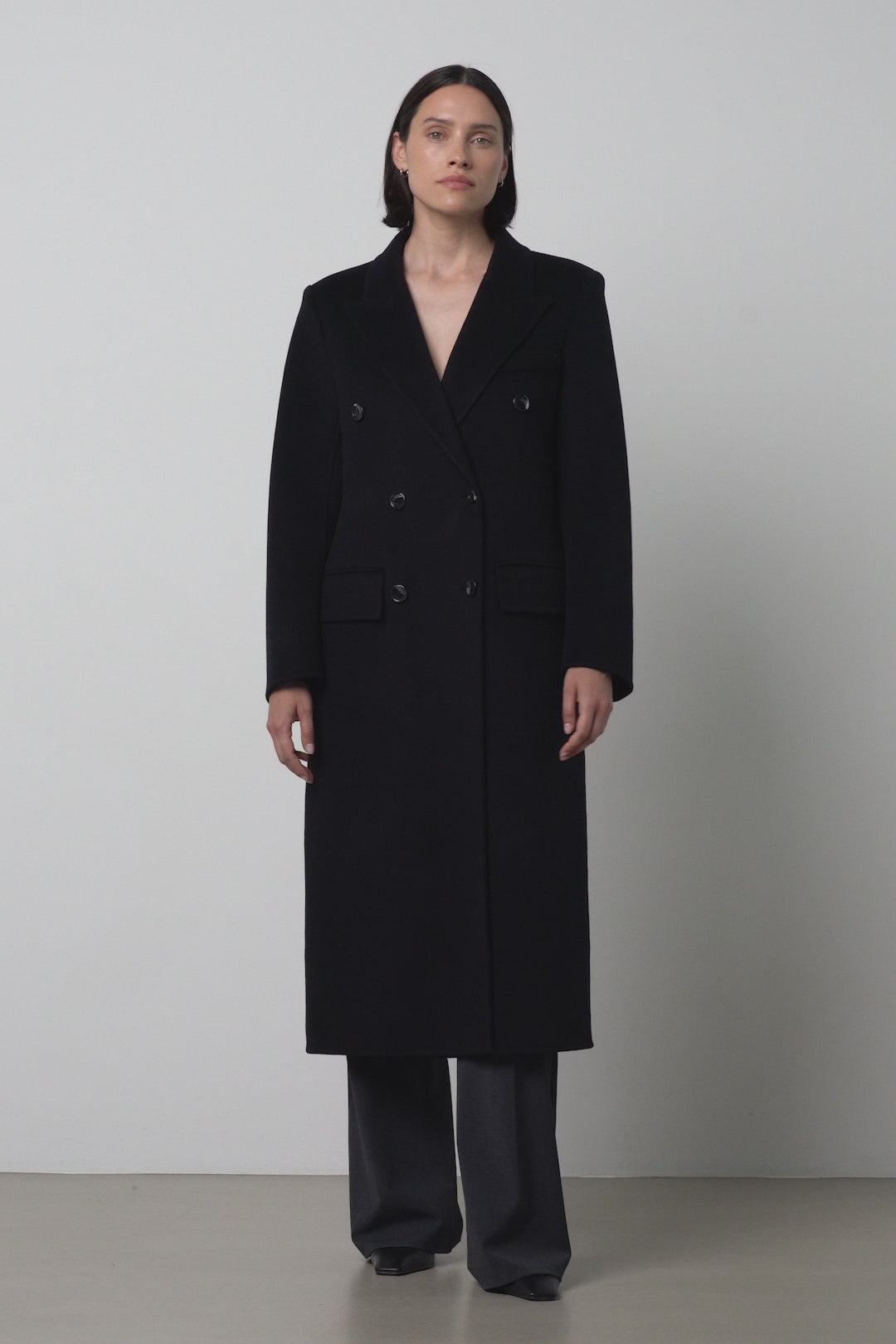 Selbstbewusste Schneiderei für kältere Tage. Der Paleteau-Mantel ist aus 100 % weicher Wolle gefertigt und verfügt über eine doppelreihige Vorderseite, definierte Schultern und einen großzügigen Kragen. Oben ist er für Komfort und Formgefüge gefüttert, der Rest bleibt ungefüttert für Leichtigkeit und Bewegungsfreiheit.