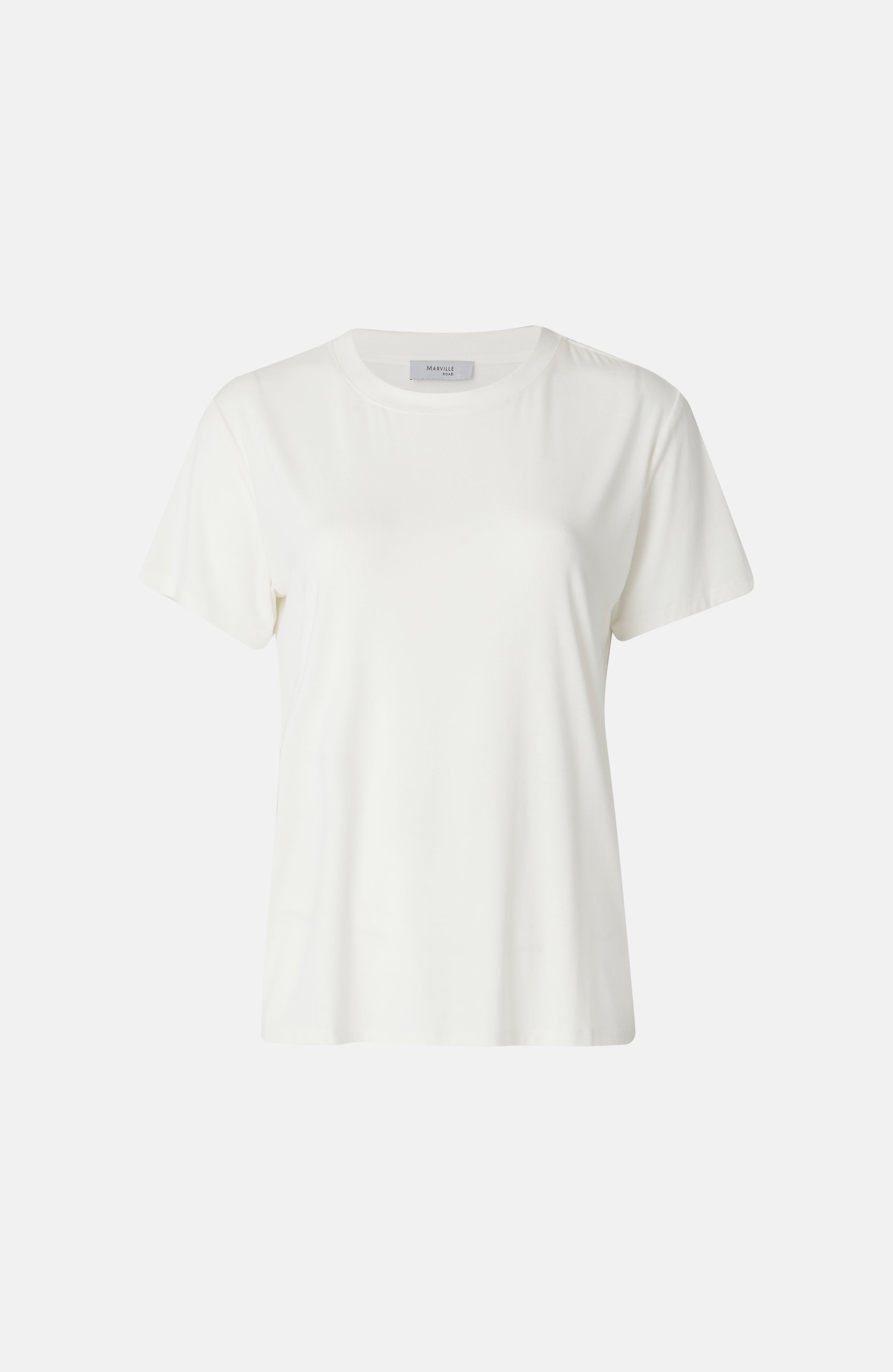 Das Carol Classic T-Shirt besteht aus einem außergewöhnlich weichen Viskose-Jersey – einem nachhaltig gewonnenen Stoff, der für seine Atmungsaktivität und seinen Komfort bekannt ist. Es ist auf Langlebigkeit ausgelegt und verfügt über einen schmeichelhaften Rundhalsausschnitt sowie eine lockere Passform.
