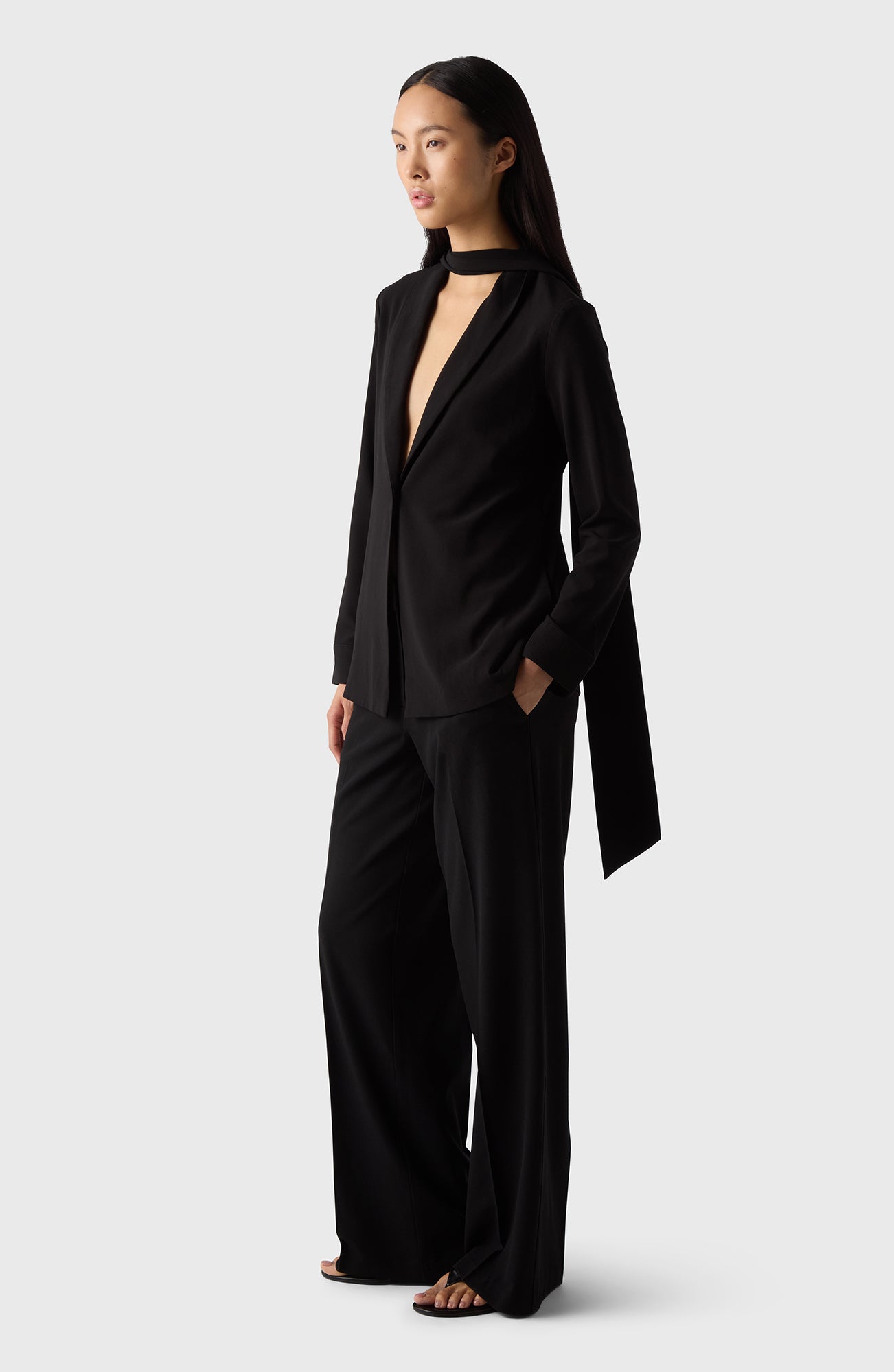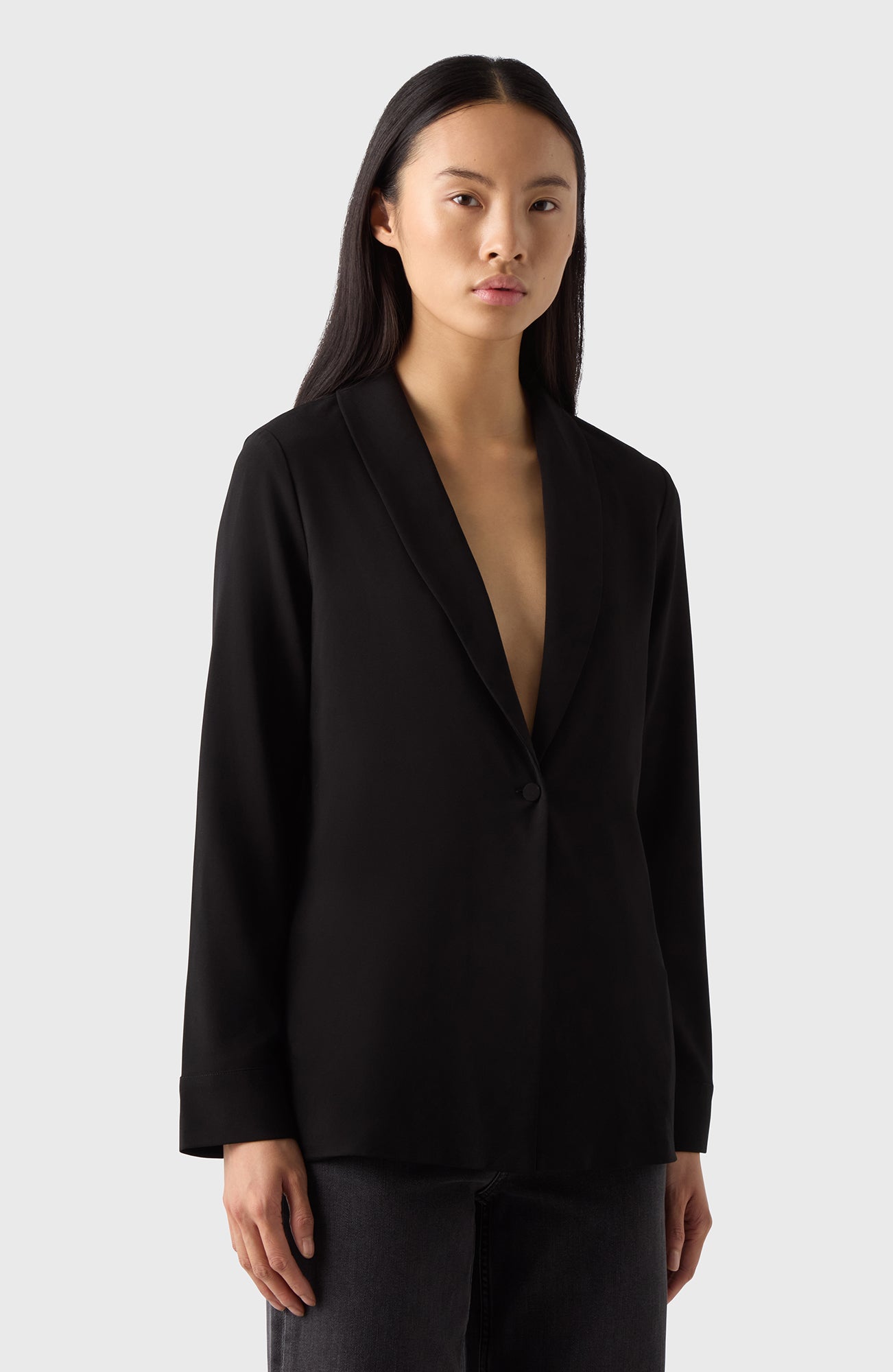 Jeder gut sortierte Kleiderschrank braucht einen weichen Blazer, und dieser ist derjenige, der viele Jahre in deinem Kleiderschrank bleiben wird. Er besteht aus weichem Crêpe und wird mit einem passenden Gürtel geliefert. Elena wird dein Favorit für die Tage sein, an denen du einfach nicht weißt, was du anziehen sollst.