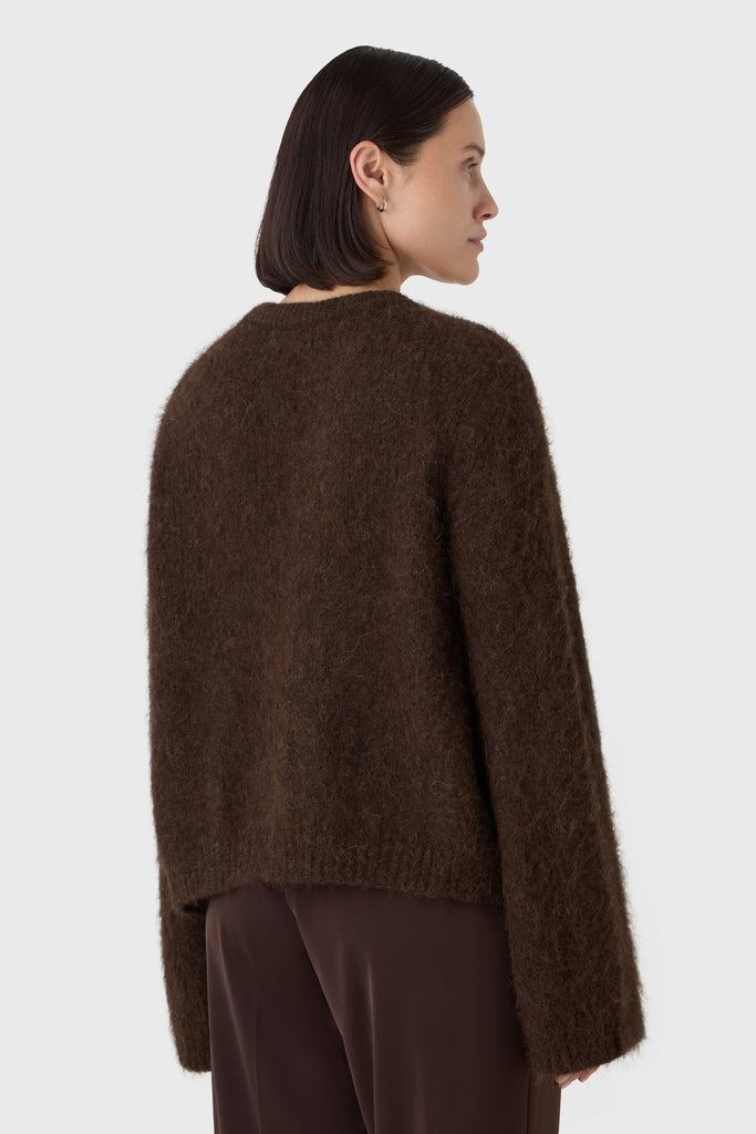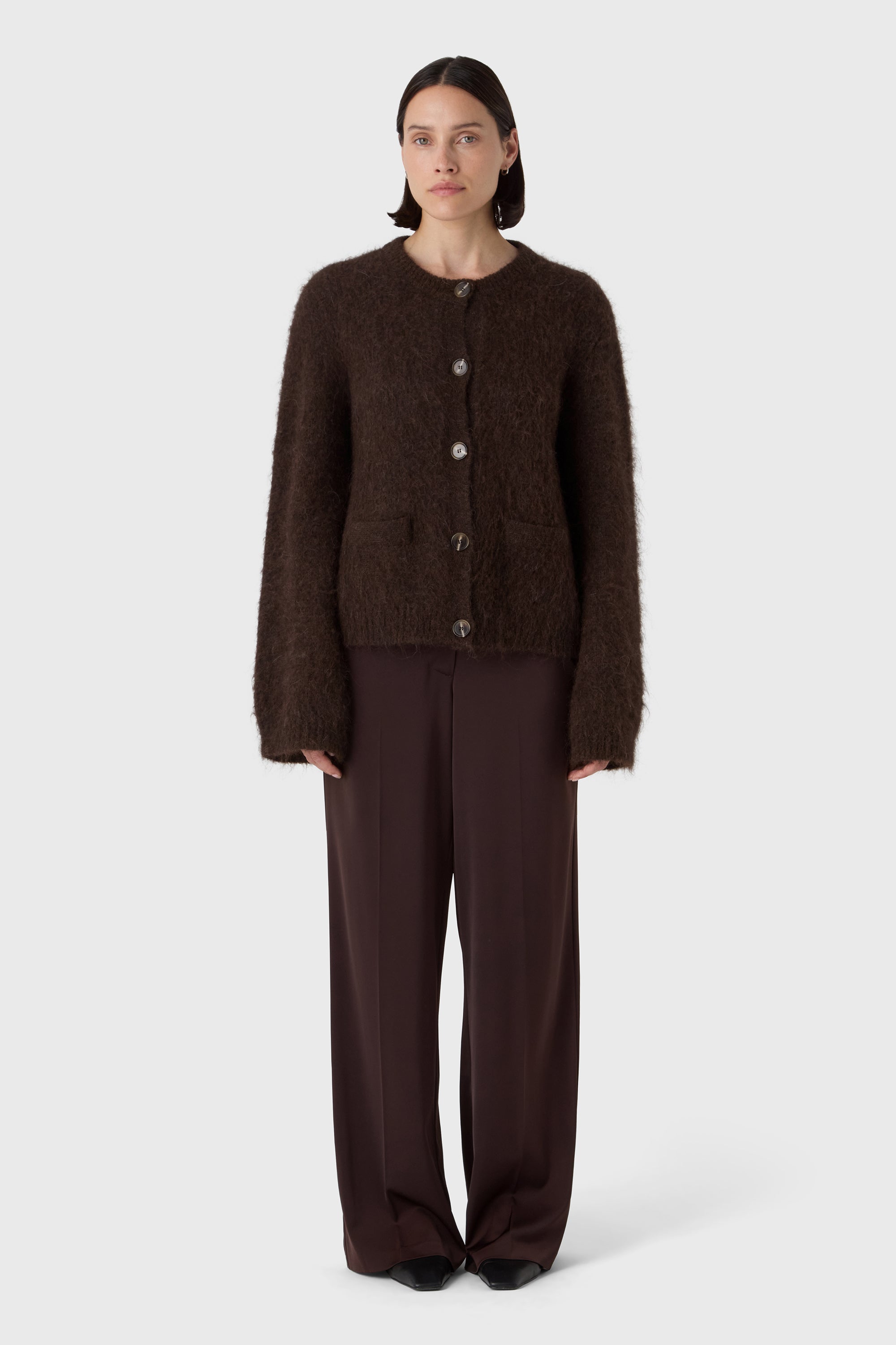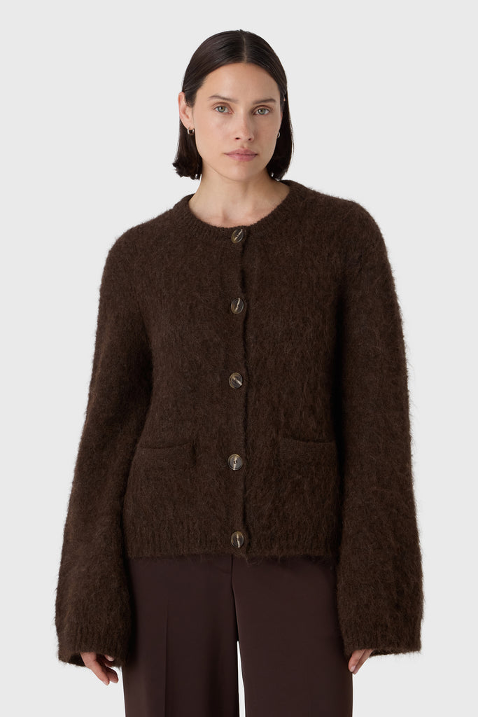 Soft volume with a textured finish. The Madeleine Cardigan is knitted from supersoft alpaca with a round neckline, wide sleeves and front patch pockets. An effortless piece with subtle structure — wear it open or buttoned, layered or light.