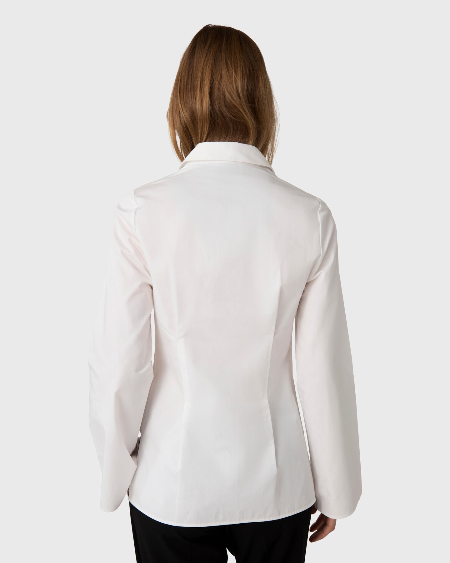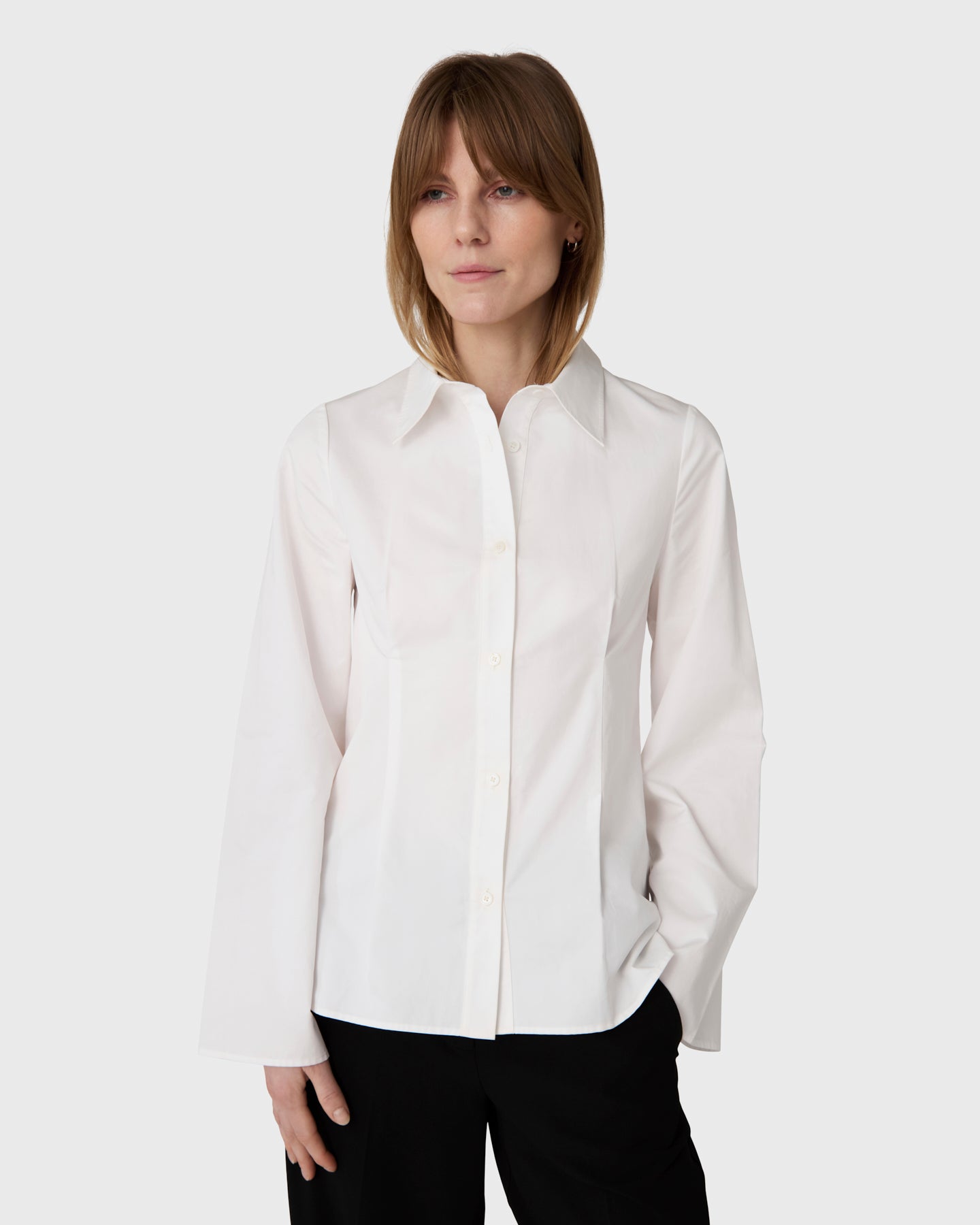 The Aurelie Cotton Shirt is a fitted cotton shirt with wide sleeves, creating a timeless, feminine silhouette. Wear on its own or styled with tailoring.