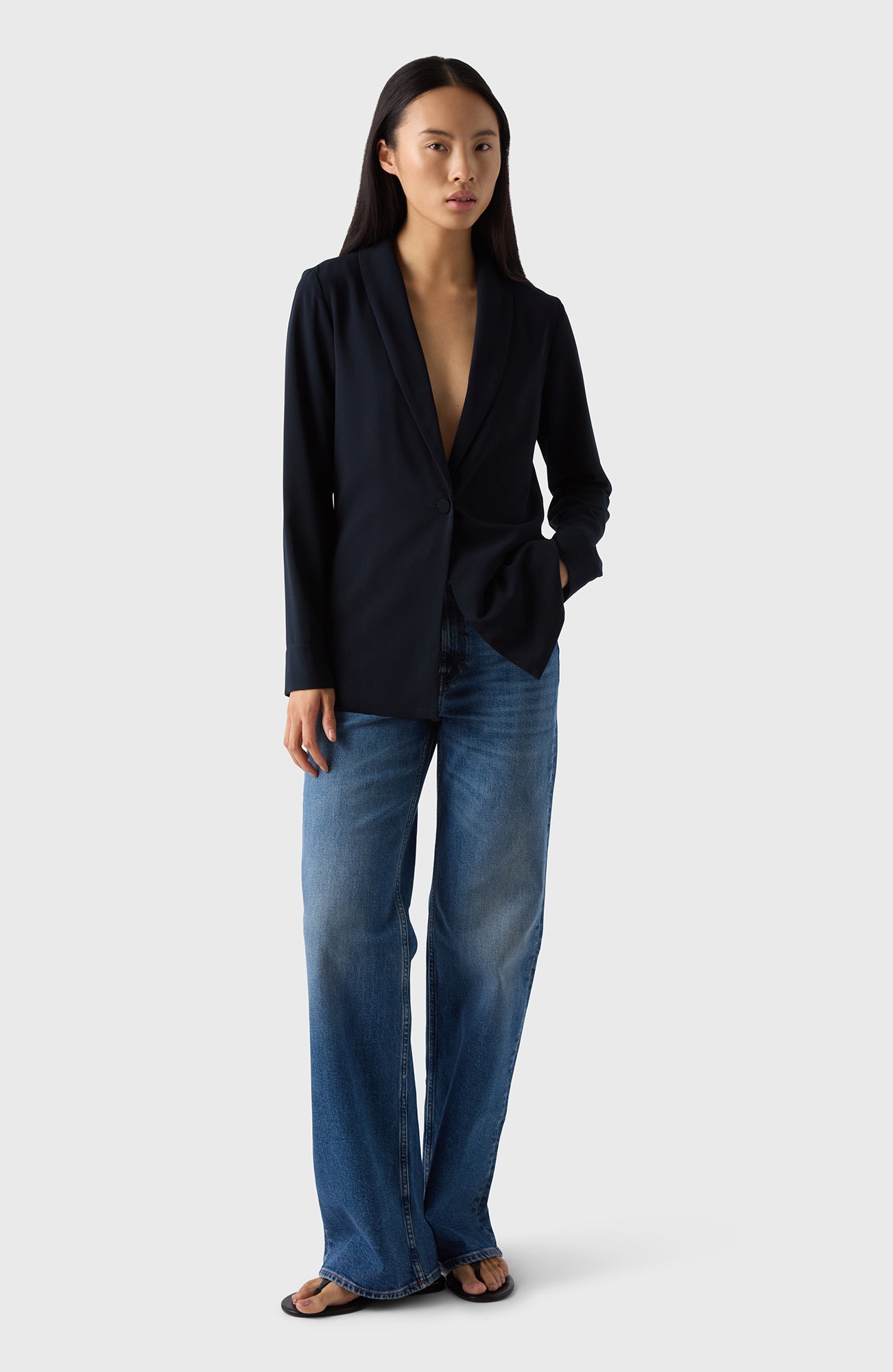 Every well-edited wardrobe needs a soft blazer, and this is the one that will stay in your wardrobe for many years to come. It’s made from a soft crepe and comes with an accompanying scarf/belt.