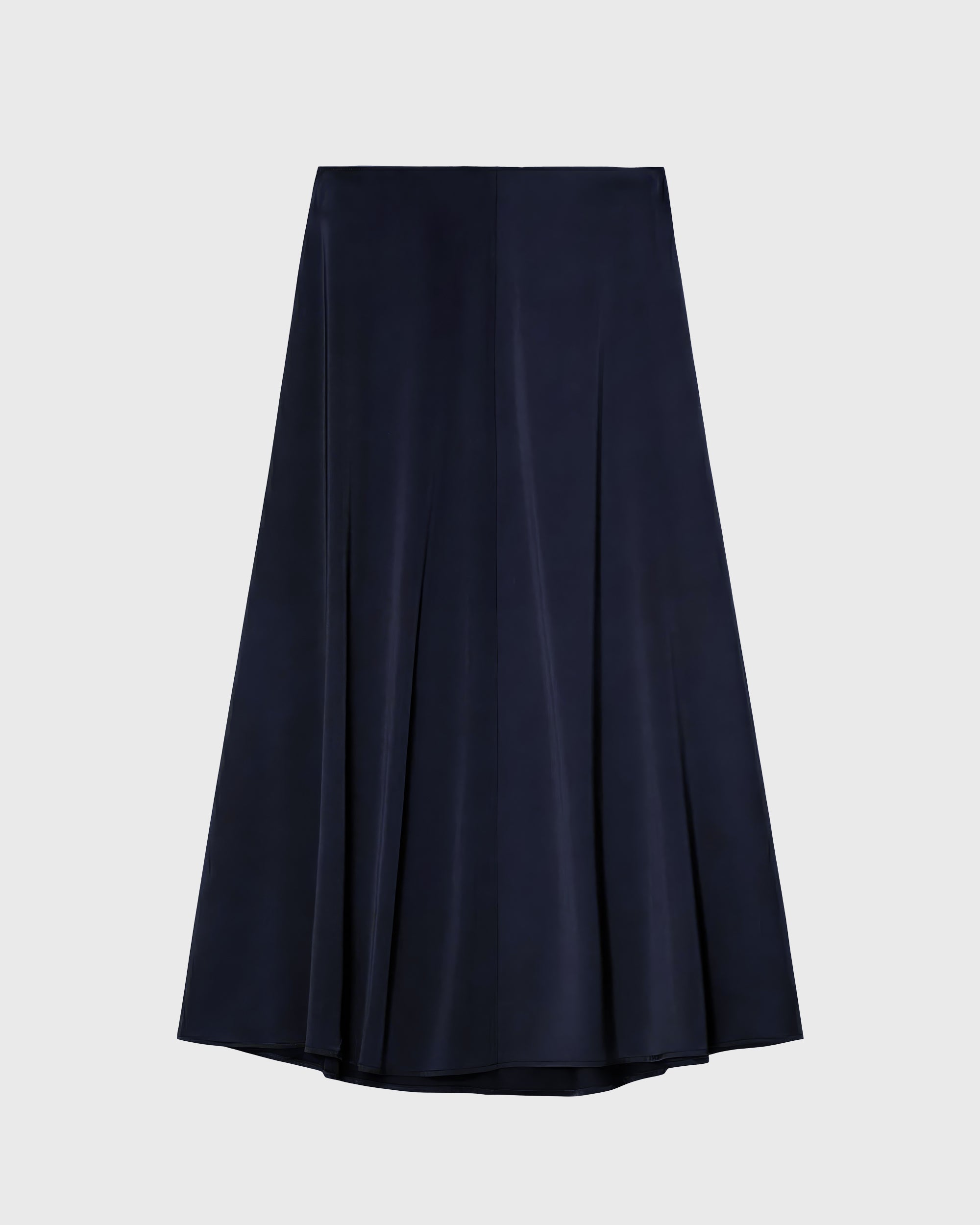 The Rhonda Satin Skirt is an ankle-length skirt in satin stretch with a softly draped silhouette. A subtle front seam adds a clean, refined expression. Pair with the matching Mia Satin Top for a cohesive look, or style with a simple tank for understated ease.