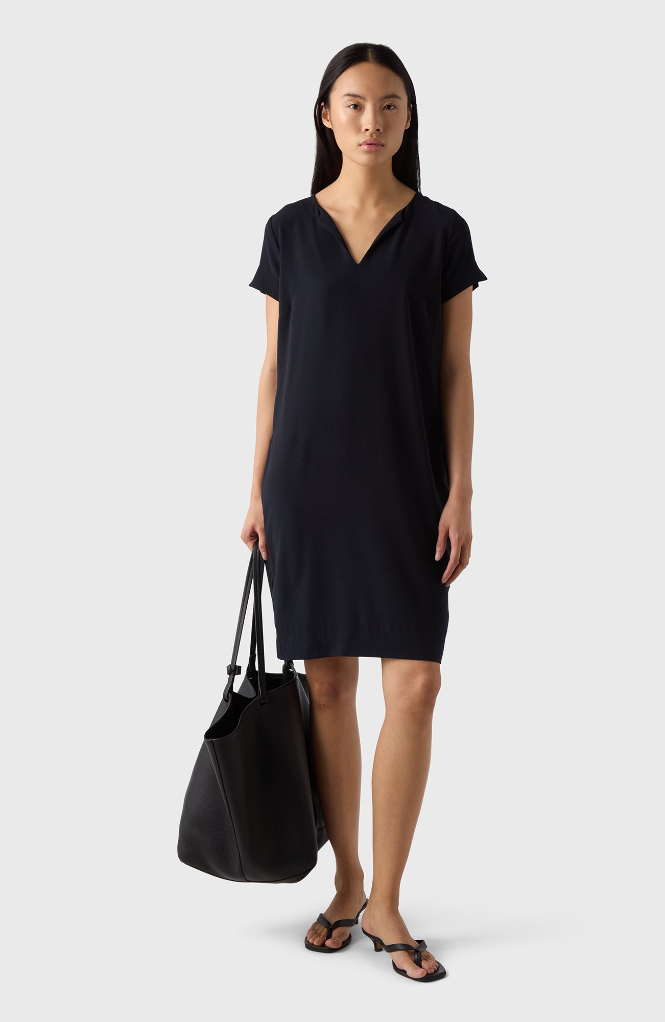 This short-sleeved midi dress is made from a soft crêpe and has a flattering neckline. Wear Alma as she is, or wrap yourself up with the accompanying belt. Consider Alma as your forever wardrobe hero. From vacations to job interviews and chic parties, she’s got your back every step of the way.