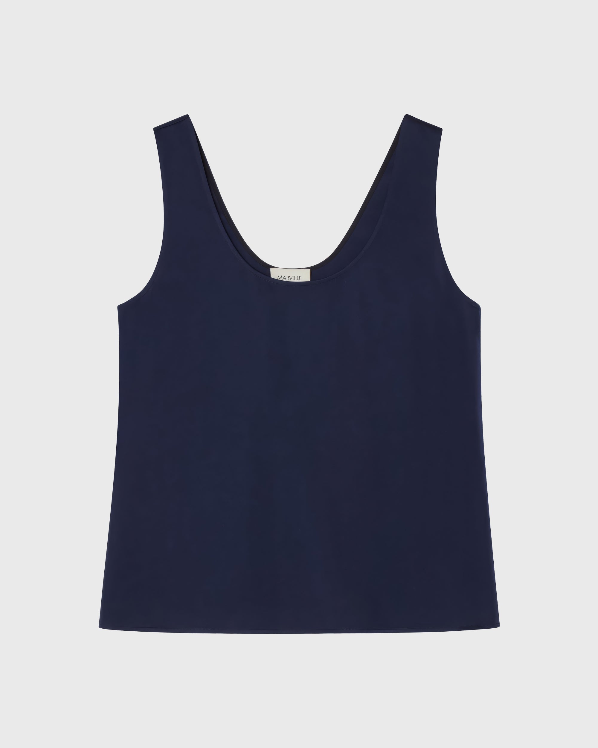 The Scala Satin Tank Top is a round-neck, sleeveless tank top in satin stretch. Designed with a timeless silhouette and a smooth, fluid feel, it’s a refined wardrobe staple that works effortlessly from day to evening.