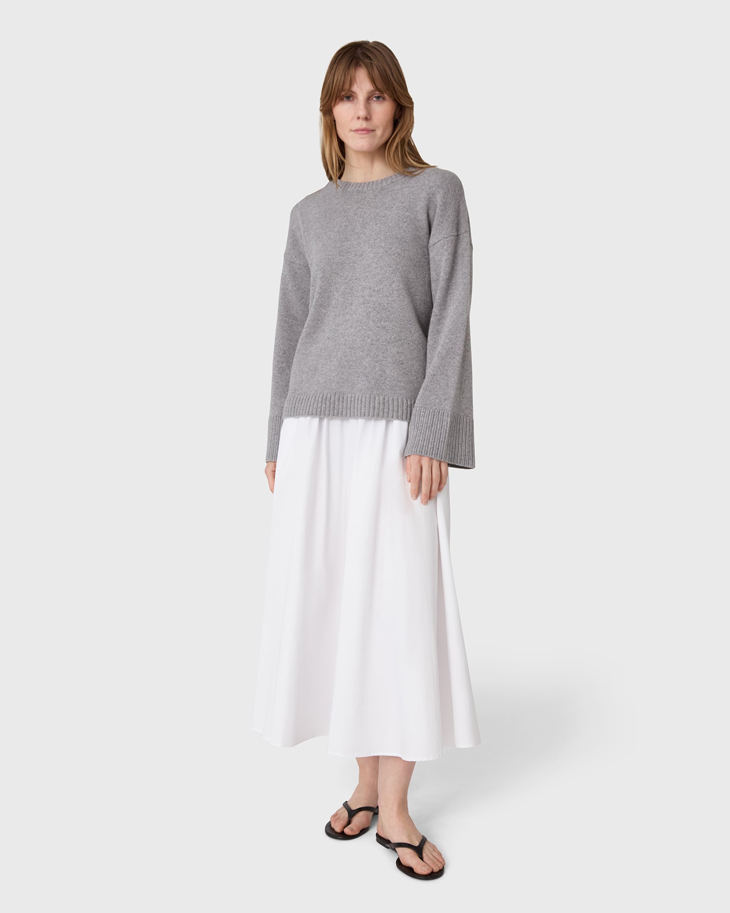 A soft staple for everyday layering. The Erin Jumper is crafted from 100% Merino Wool  with a round neckline, long sleeves and ribbed trims at the cuffs, hem and collar. The clean design and relaxed shoulder make it easy to wear from workdays to weekends.