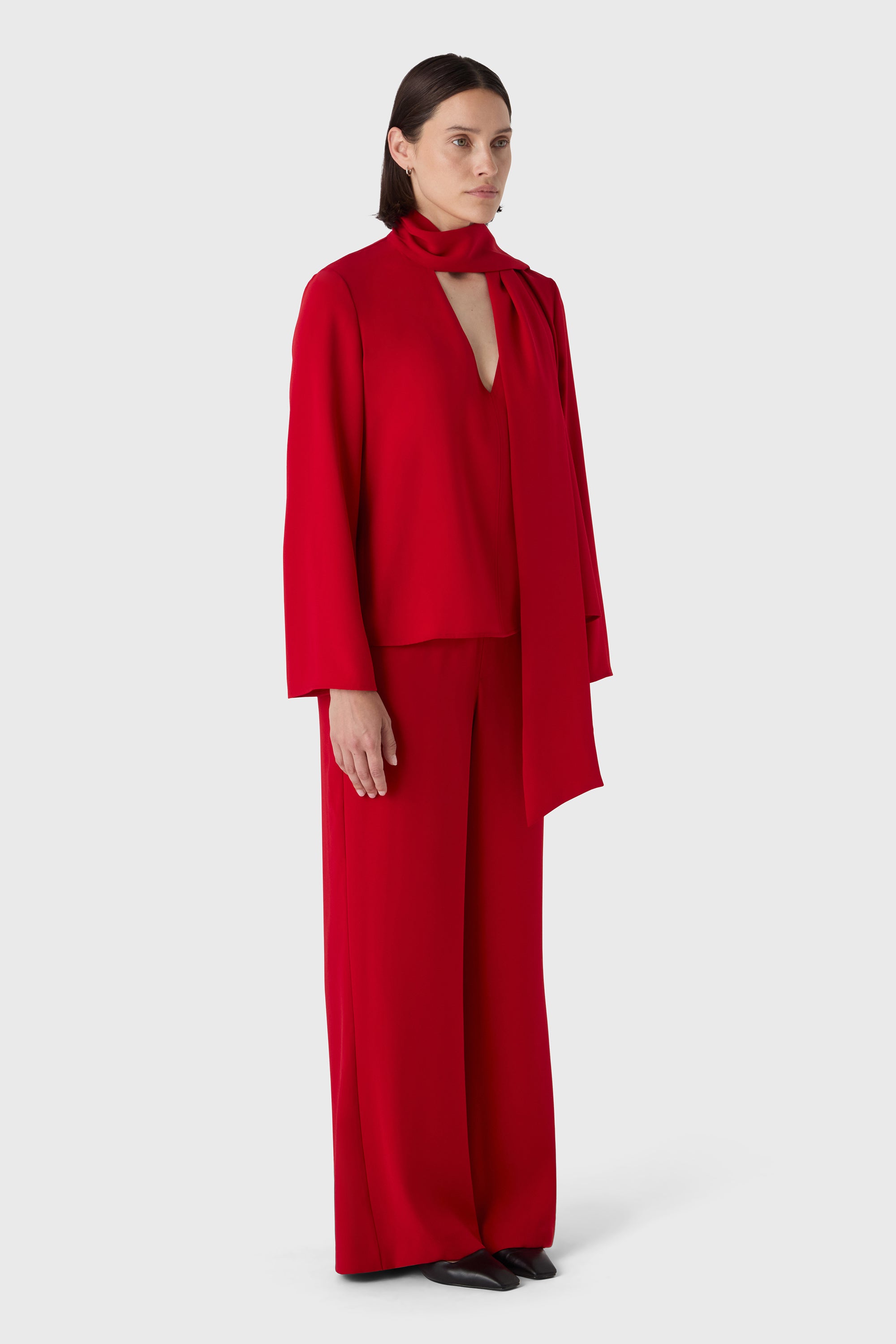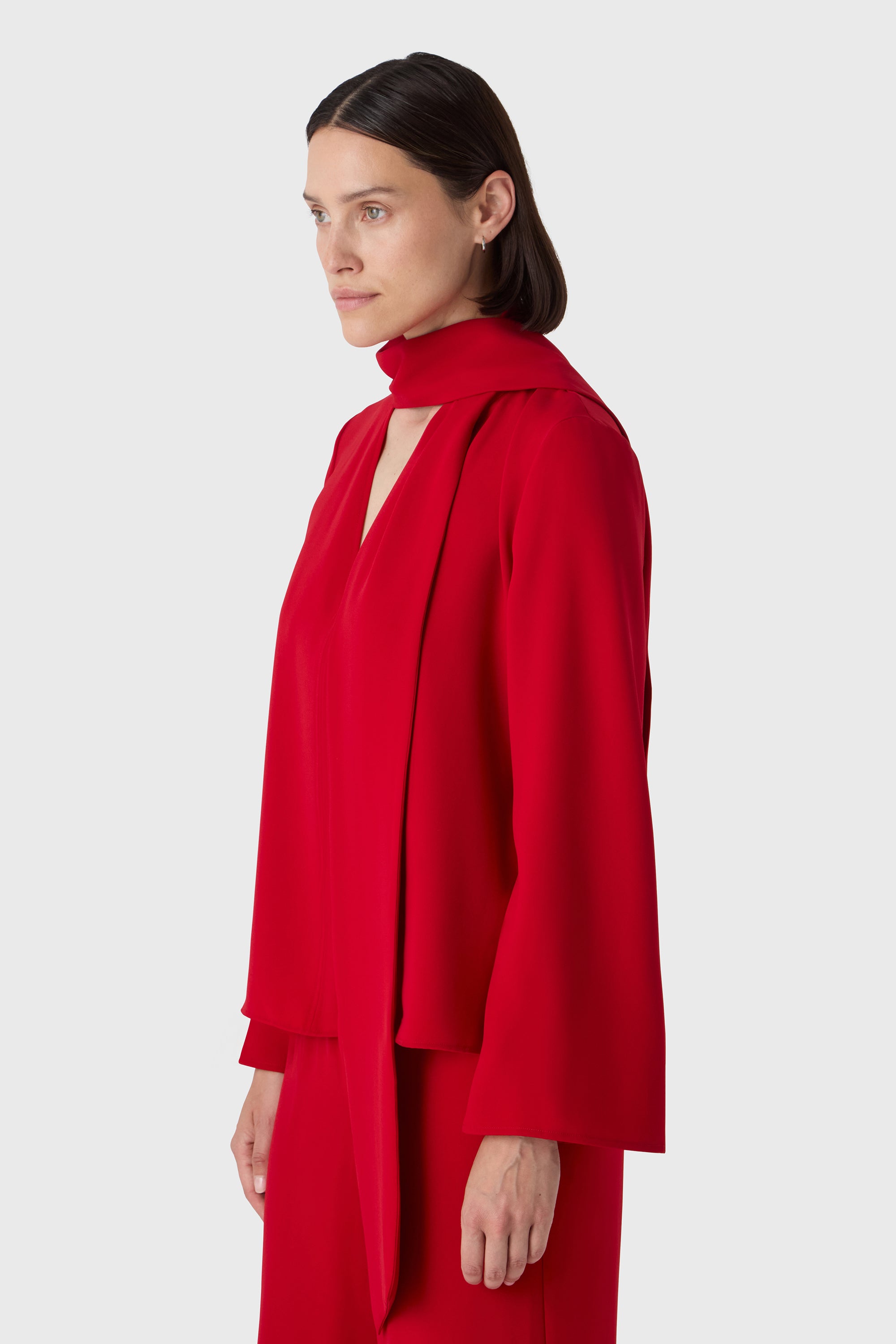 Élégance sans effort avec une touche d'originalité. La blouse Renée est confectionnée en twill de polyester doux et présente des manches longues, un tombé fluide et un col châle généreux qui peut être stylé de plusieurs façons. Nouez-le en un nœud, laissez-le tomber librement ou enroulez-le — il s'adapte à votre journée.