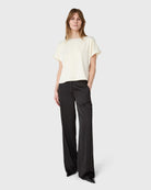 The Mia Satin Top is a short-sleeved top with a round neckline and a slightly fitted shape. In satin stretch with a decorative seam, pair with the matching Rhonda Satin Skirt or denim.