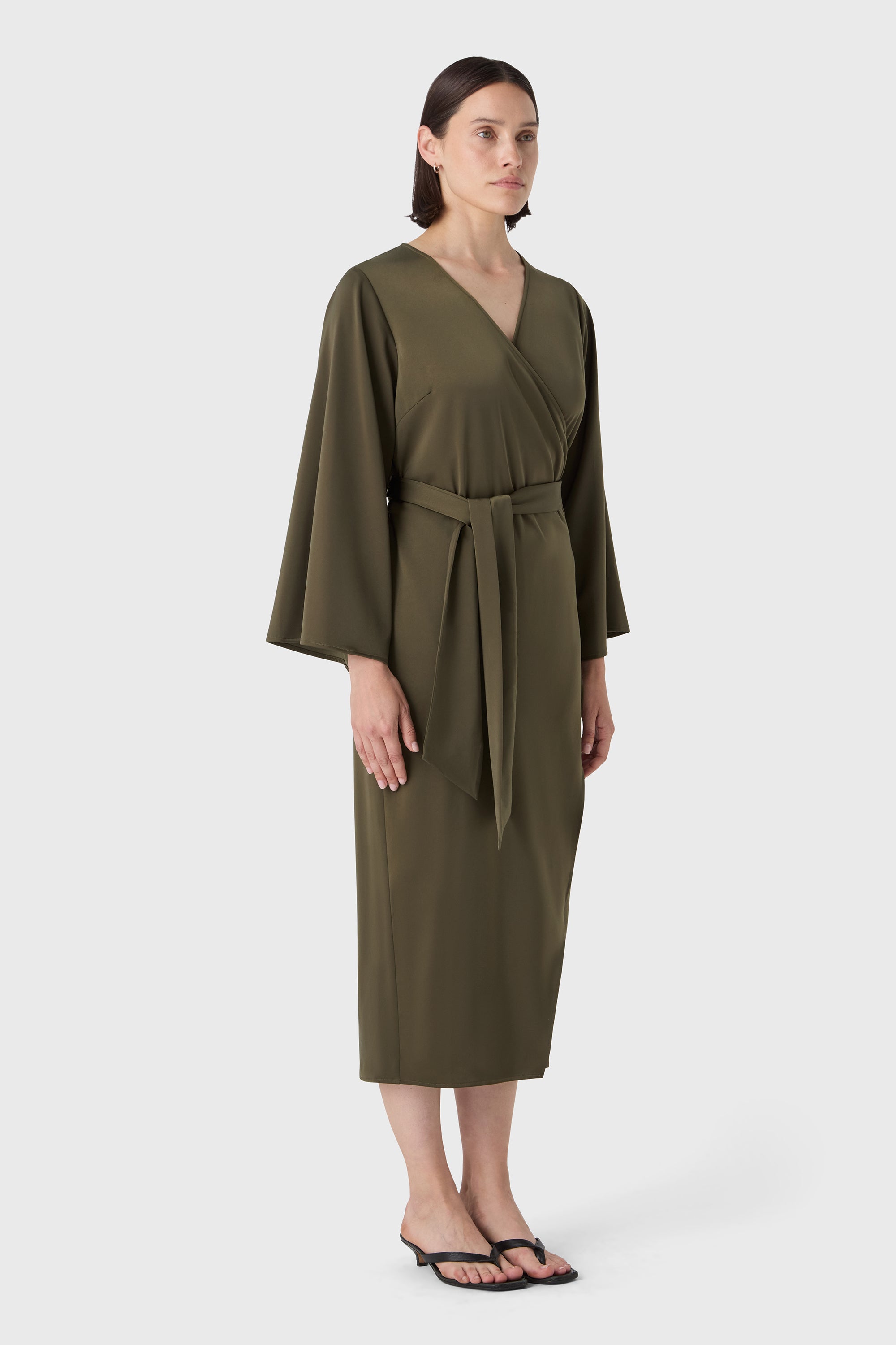 La robe Mira est notre modèle portefeuille emblématique – une pièce intemporelle conçue pour bouger et respirer avec vous. Confectionnée en satin stretch doux, elle tombe magnifiquement sur le corps tout en offrant un confort total. Les manches larges et la ceinture à nouer à la taille créent une silhouette flatteuse, idéale aussi bien pour le bureau que pour les événements en soirée. Une robe incontournable pour une élégance sans effort.