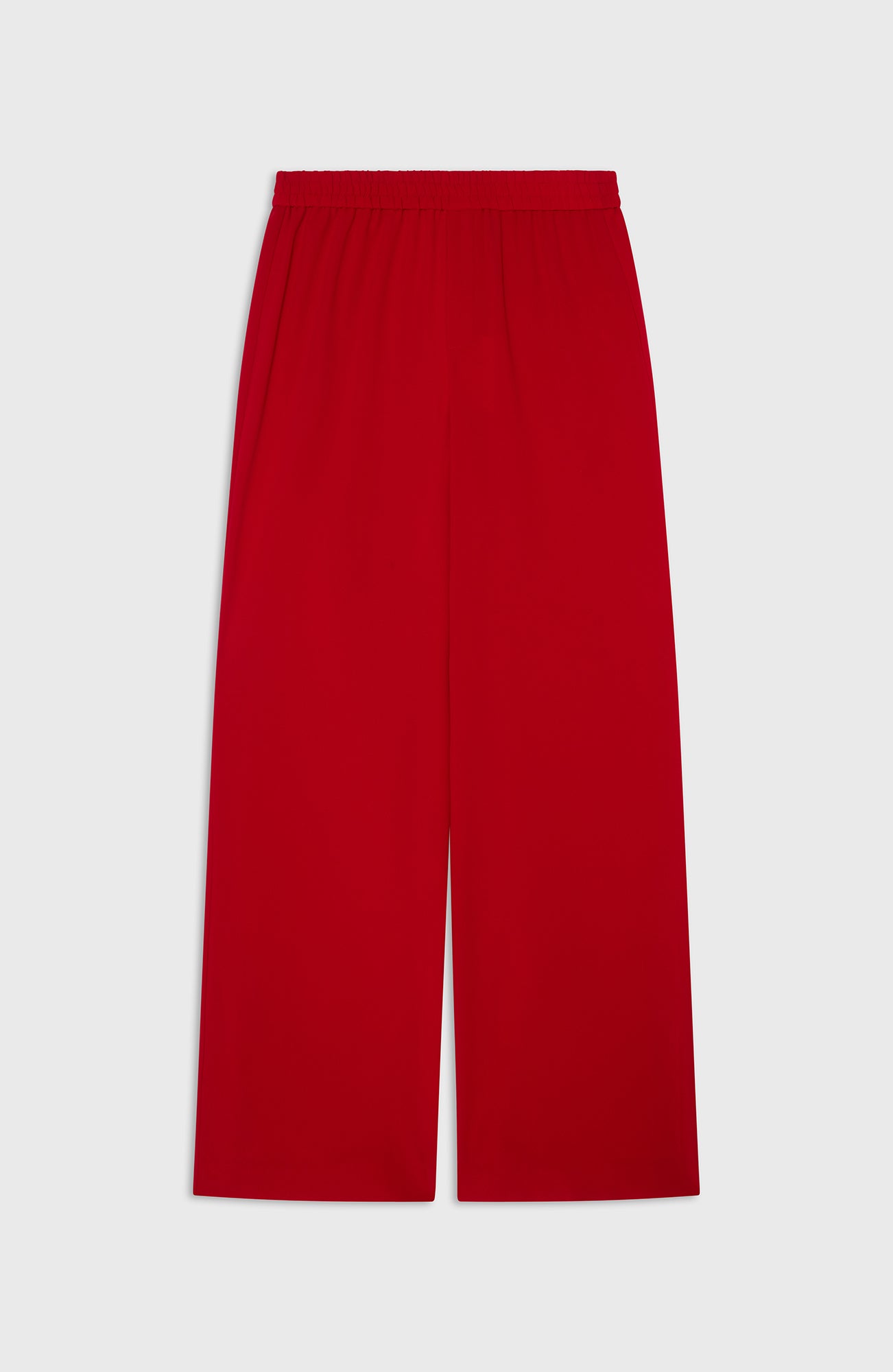 Soft volume, effortless feel. The Josephine Trousers are tailored in flowy poly twill with a wide leg and elastic waistband for all-day ease. The drape is fluid and flattering — ideal with a soft blouse or sleek knit.