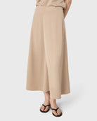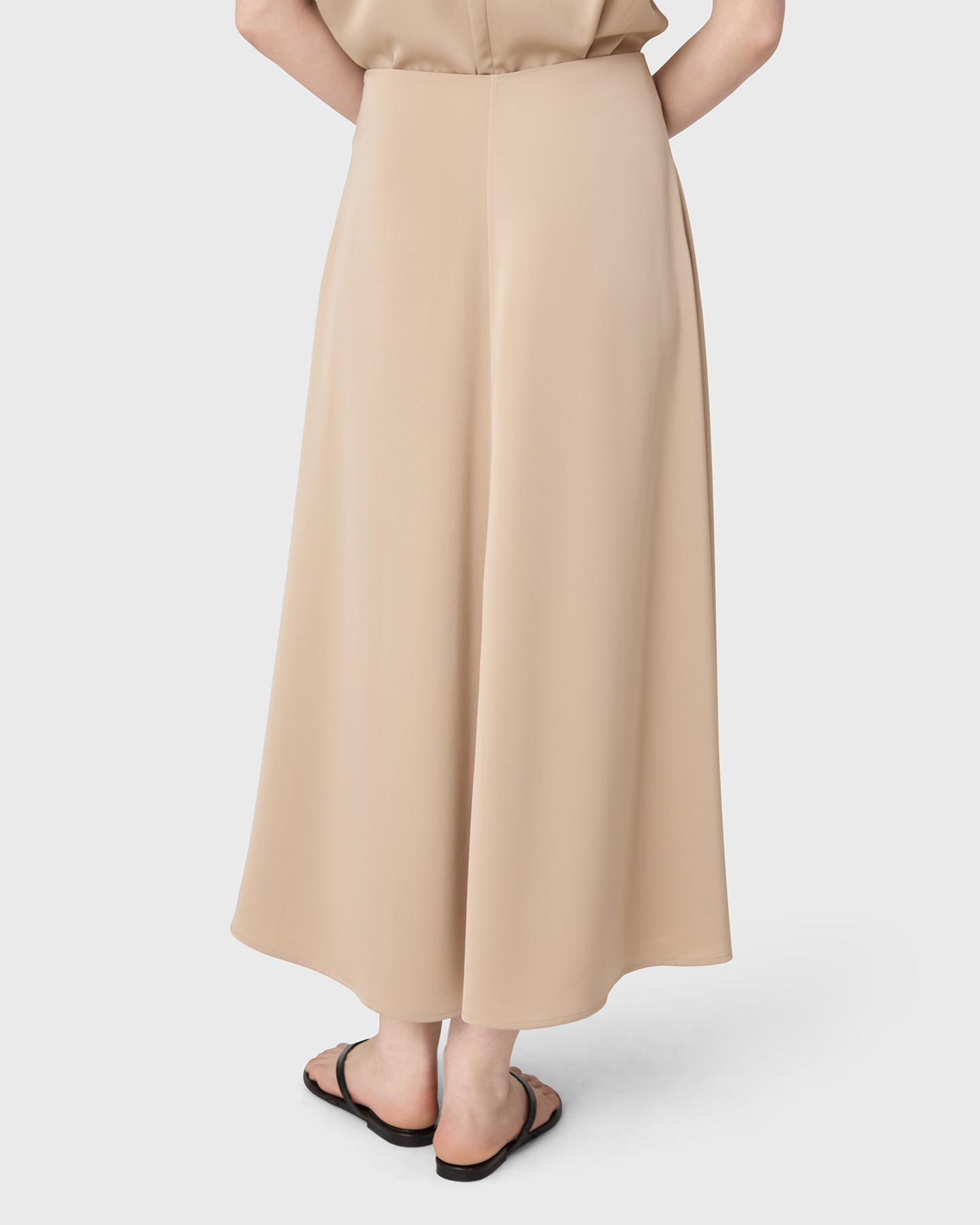 The Rhonda Satin Skirt is an ankle-length skirt in satin stretch with a softly draped silhouette. A subtle front seam adds a clean, refined expression. Pair with the matching Mia Satin Top for a cohesive look, or style with a simple tank for understated ease.