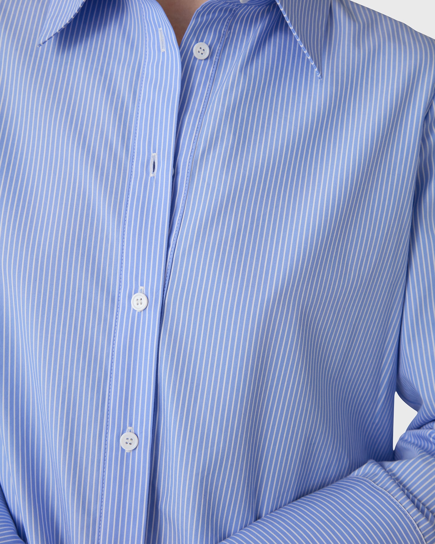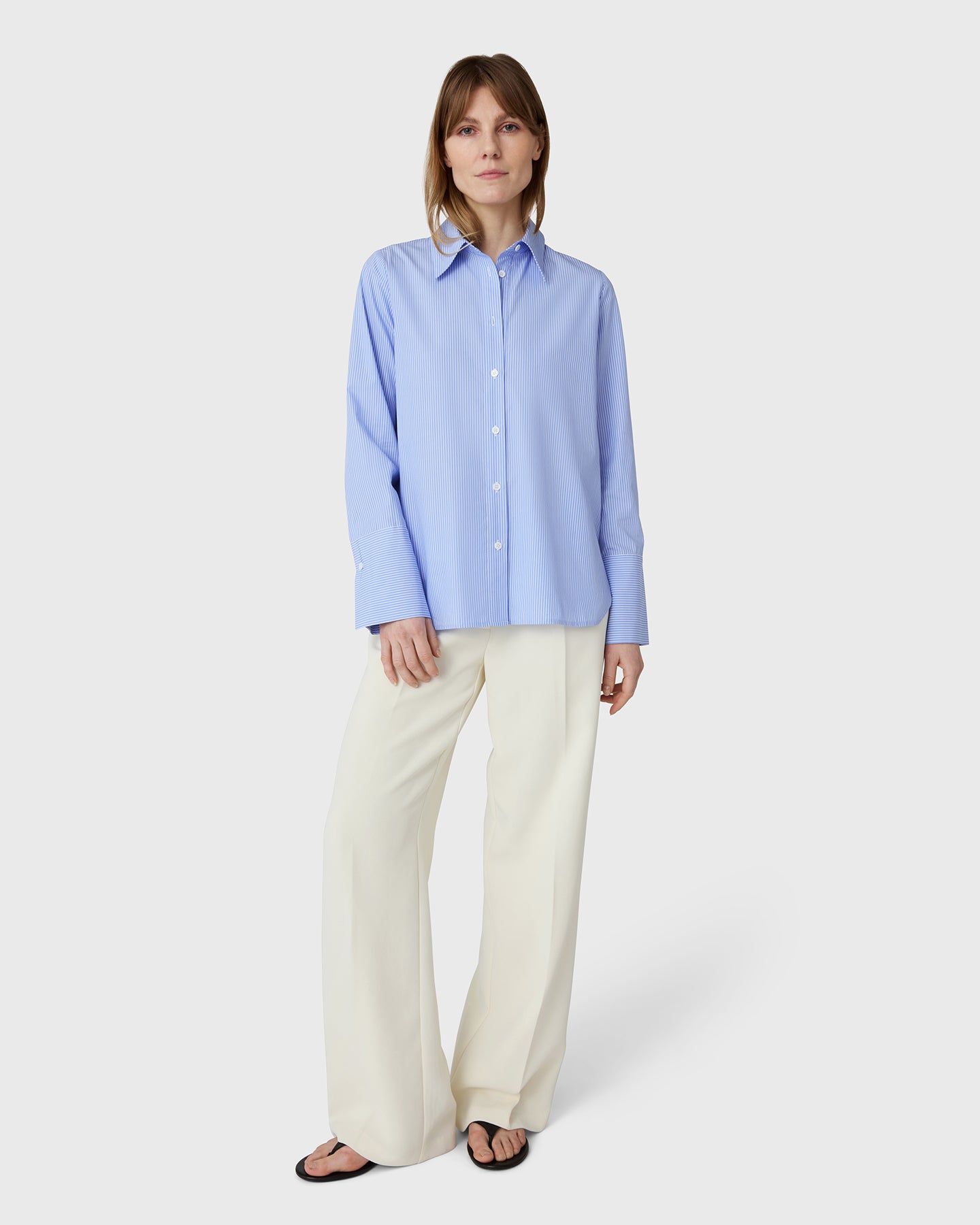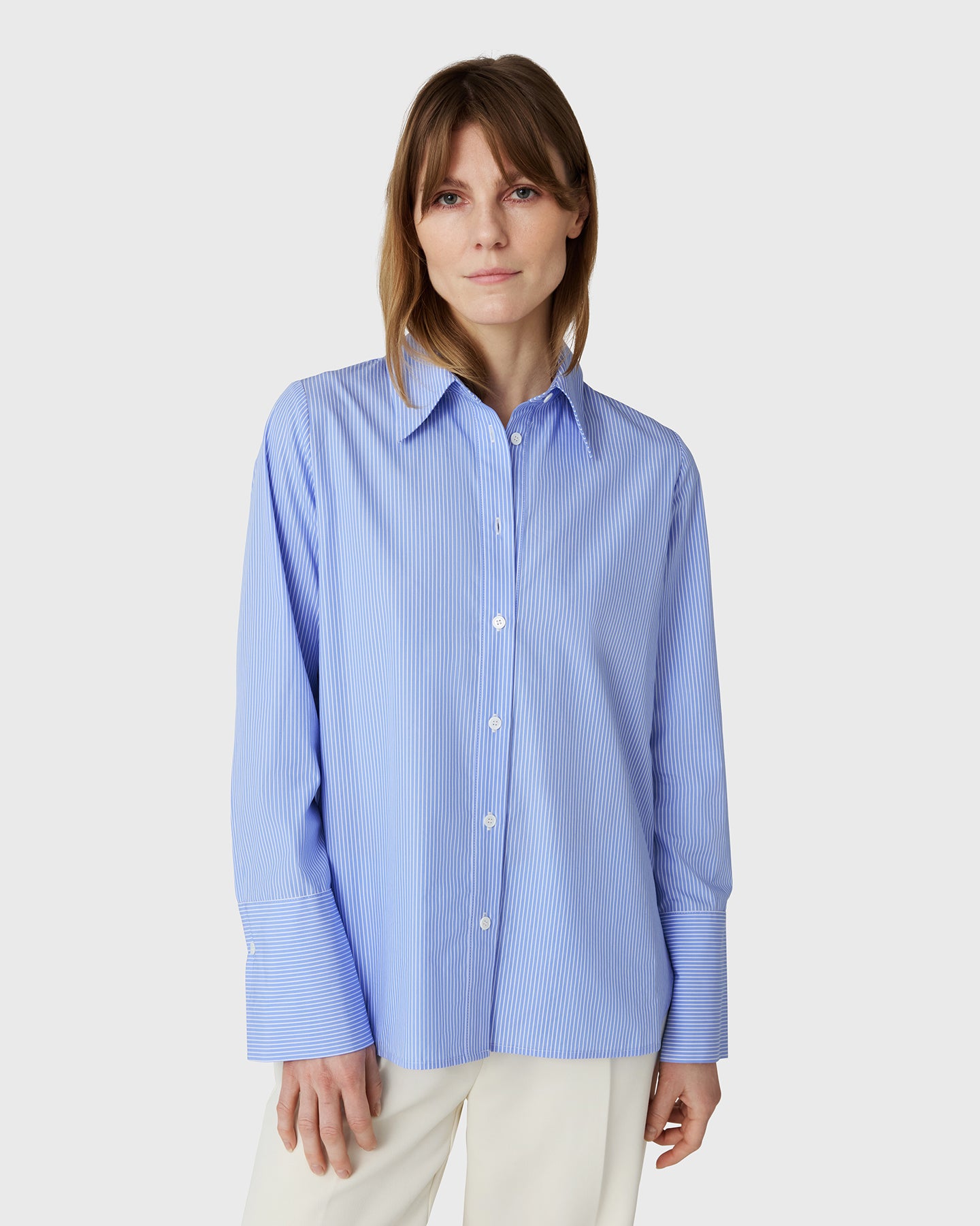 Oprah randig skjorta är en bomullsskjorta med en avslappnad, något oversized passform och en längre bakre fåll. Ett tidlöst och förhöjt garderobsplagg.